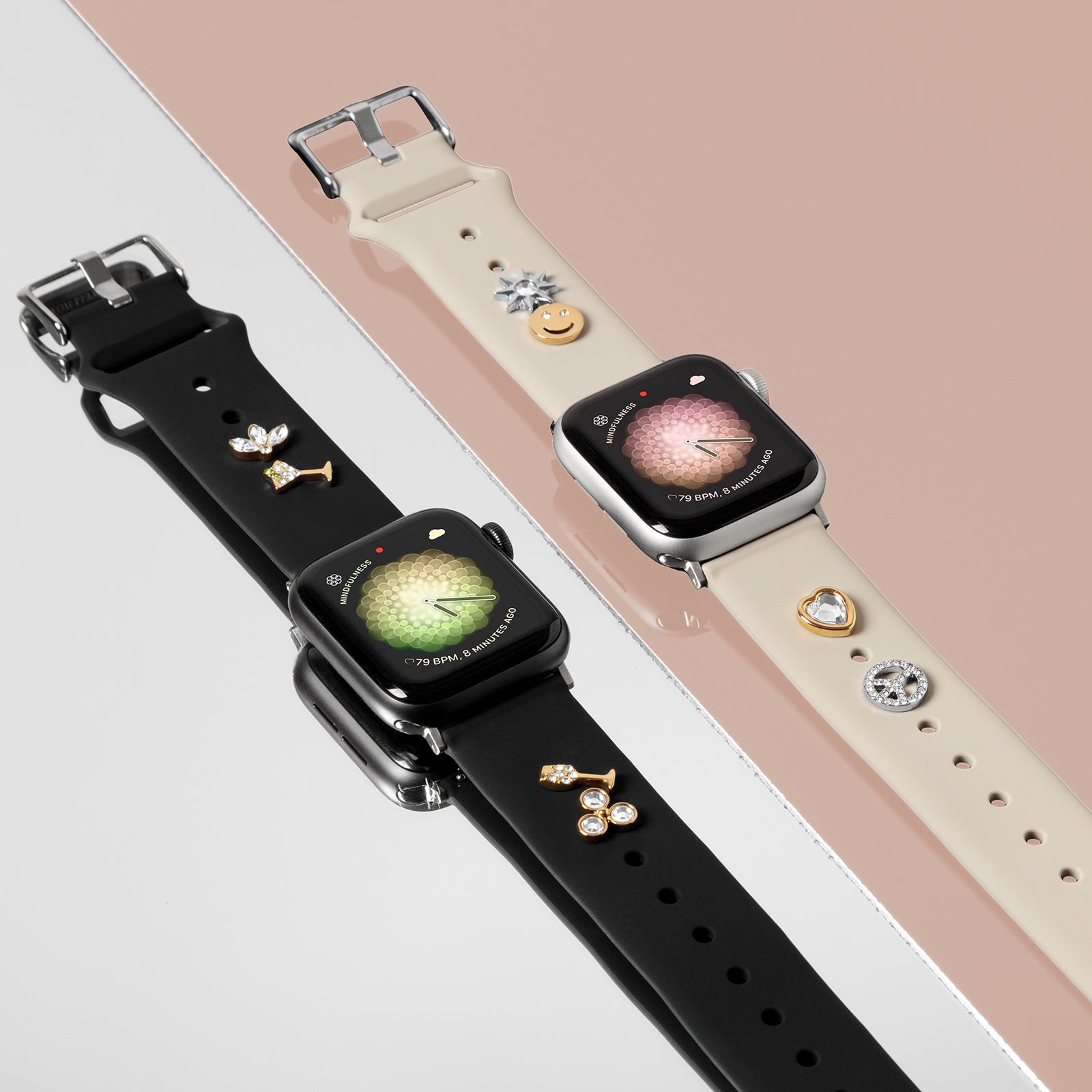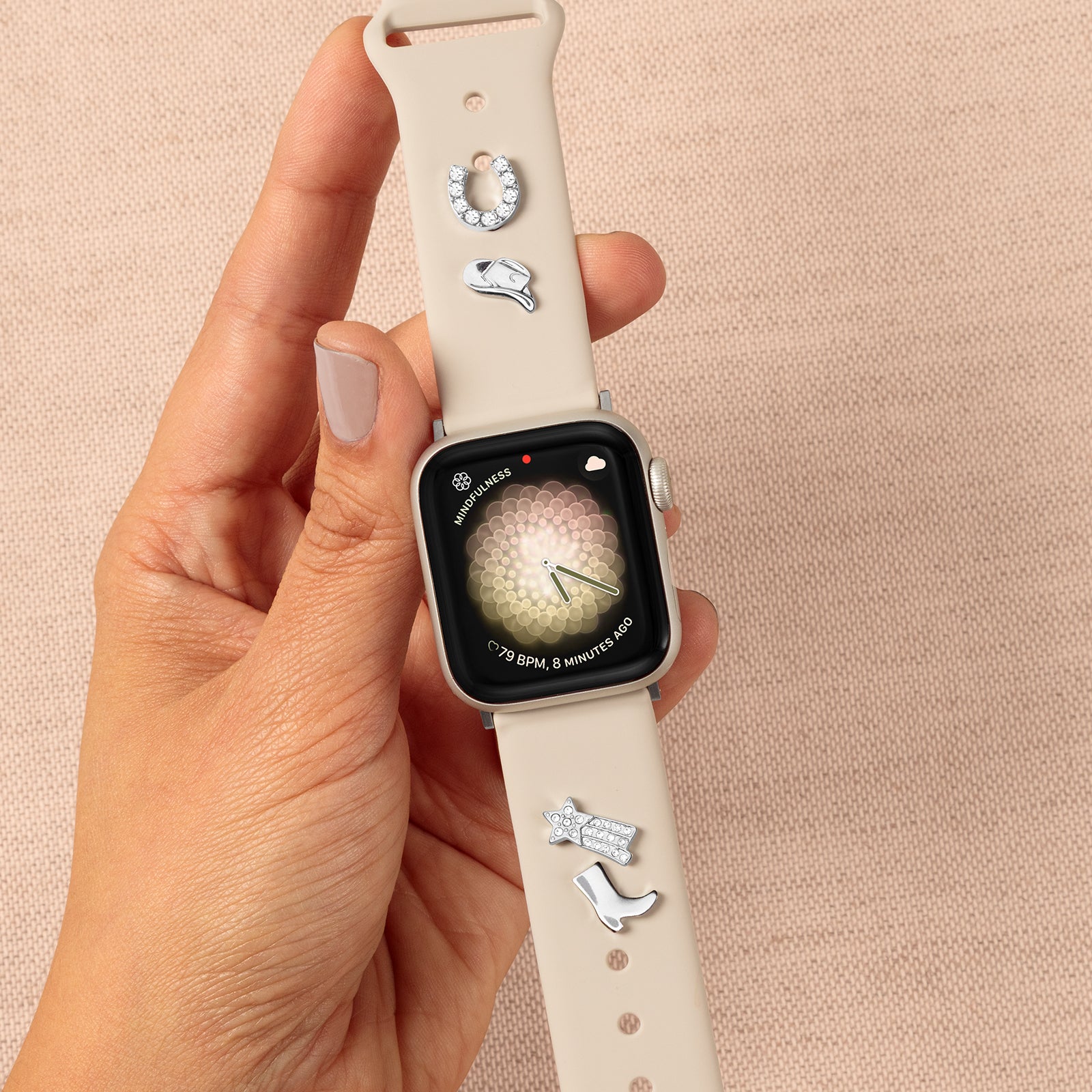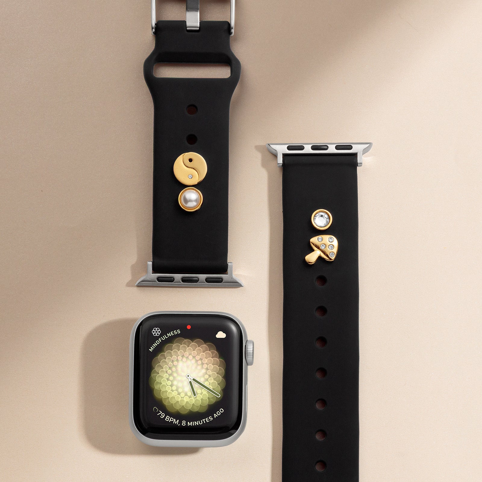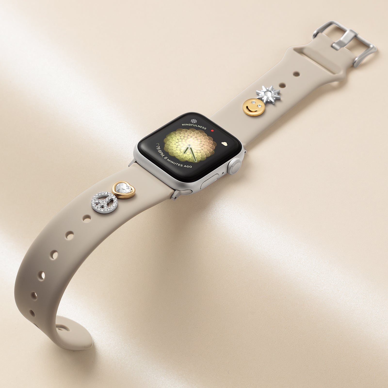 This keeperless silicone strap is crafted to pair with our Band Candy charms for a customizable pop of fun and color for your Apple Watch. The smooth strap features a recessed channel on the underside, allowing charms to sit flush against your skin for a clean, seamless look. Sizing holes extend the full length of the strap so you can position charms exactly where you want them—close to the watch face or further down the band.