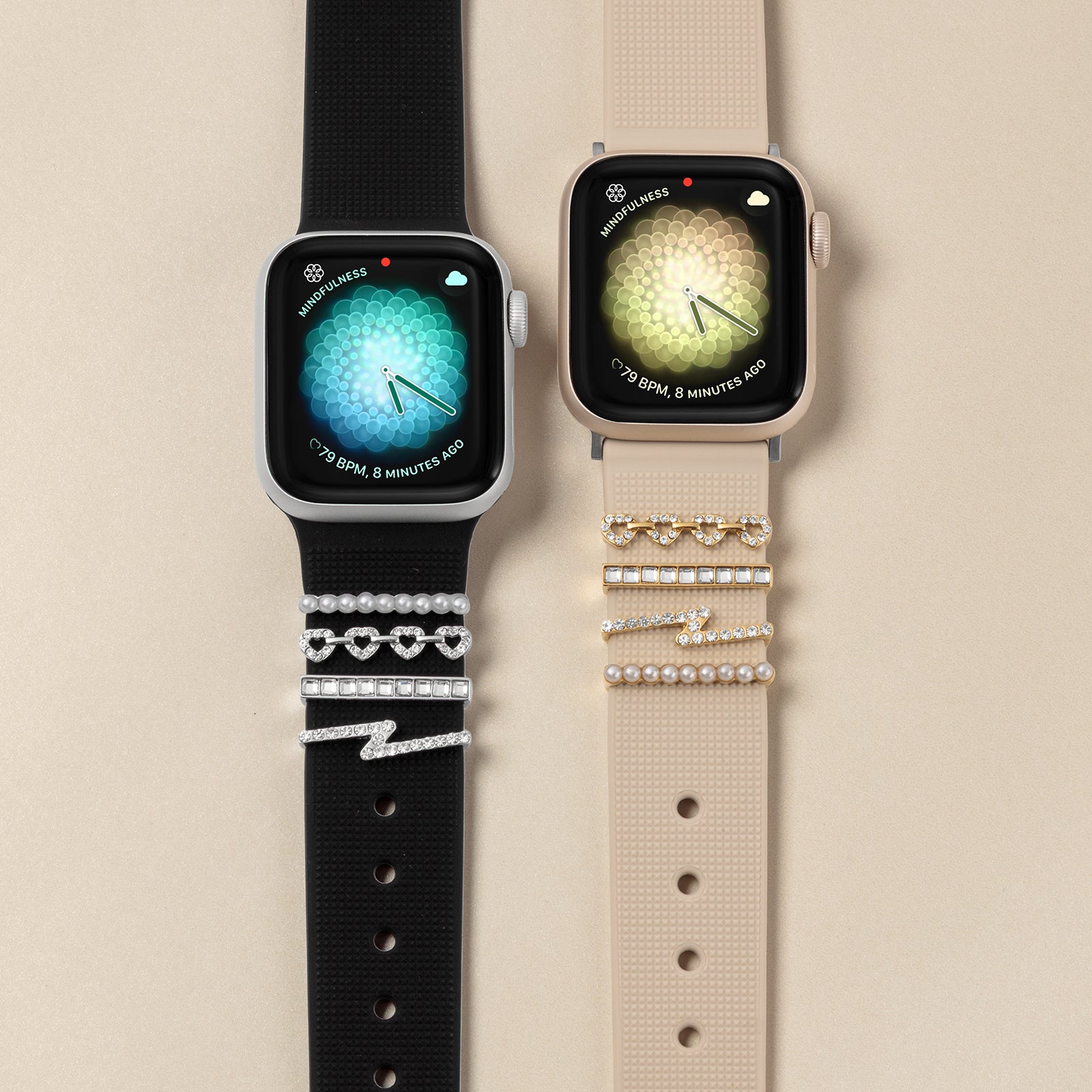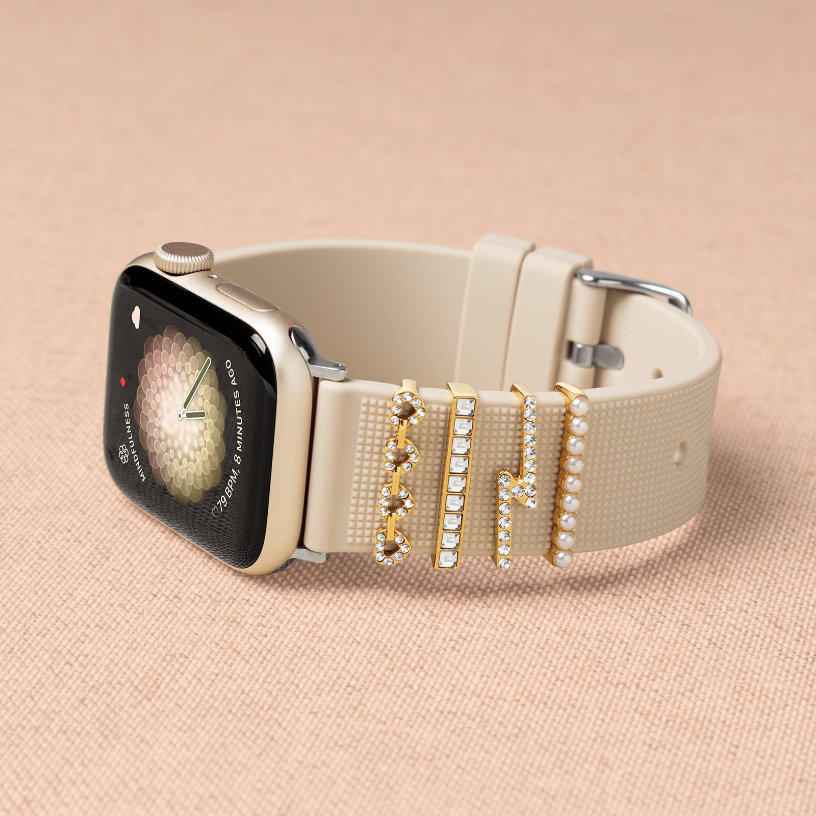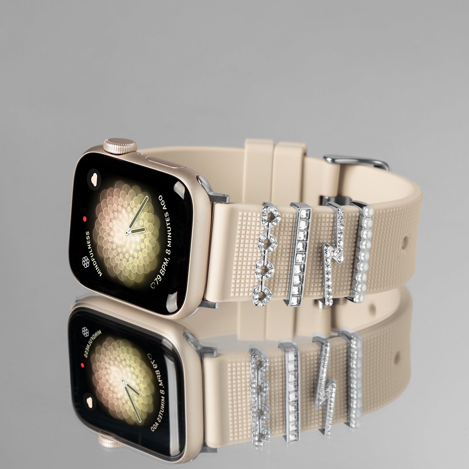 This textured silicone strap is crafted to pair with our Band Candy Sliders for a customizable sparkle on your Apple Watch. The smooth, textured strap allows sliders to groove seamlessly and stay in place for a playful, polished look. Sizing holes extend the full length of the strap so you can position sliders exactly where you want them—close to the watch face or further down the band.