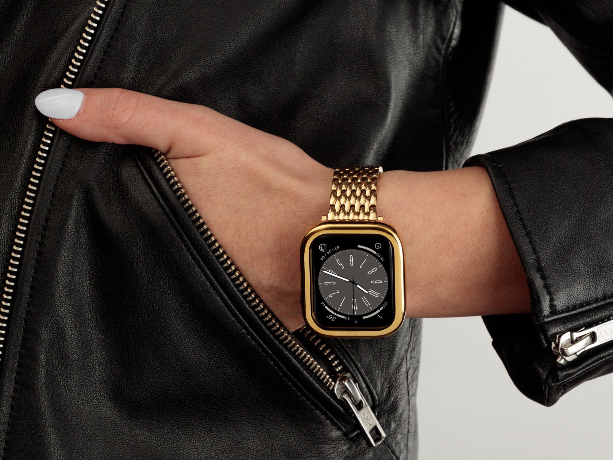 The Honeycomb Stainless Steel Band gives your Apple Watch a sleek, high-polished finish. Its refined honeycomb design offers a modern yet timeless look. The band is crafted from durable stainless steel with rich gold-tone or silver-tone ionic plating. Secured with a sturdy two-button fold-over buckle, it’s adjustable for the perfect fit and includes additional links and a sizing tool for easy customization. A statement of strength and style, this all-steel band is built to last.